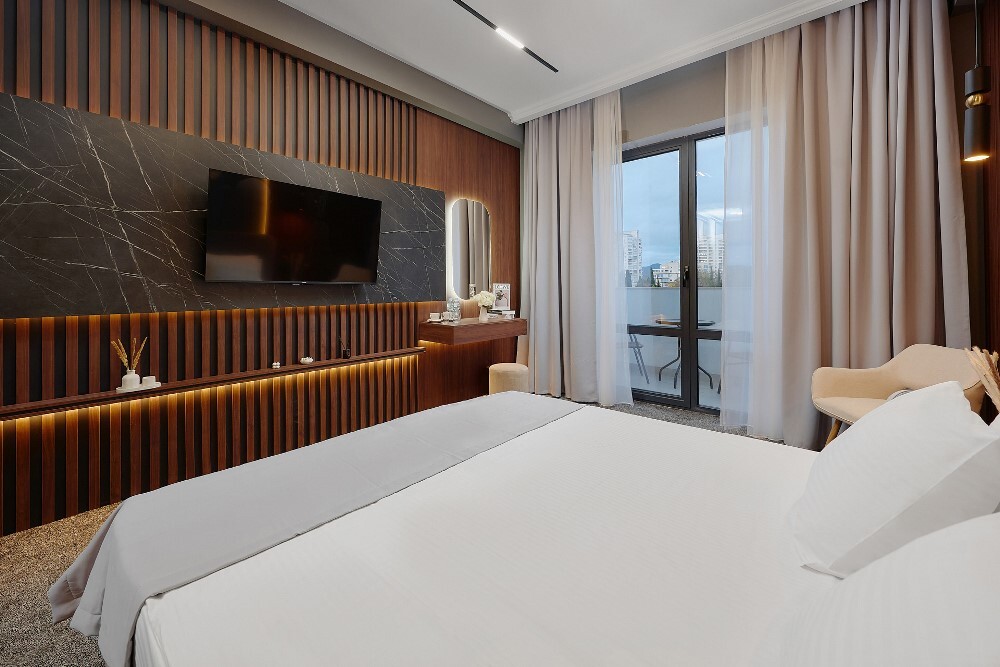 Наслаждайтесь комфортом и уютом в номере категории Стандарт с балконом в отеле Грейс Глобал. Пройдя в элегантно оформленный интерьер, вы сразу почувствуете атмосферу спокойствия и уюта. Просторный балкон предлагает идеальное место для утреннего кофе или вечернего отдыха, открывая вид на живописные окрестности. В номере предусмотрено всё для вашего удобства — от мягкой кровати до современного оборудования. После насыщенного дня в городе или на пляже, возвращение в эту тихую гавань станет настоящим удовольствием.