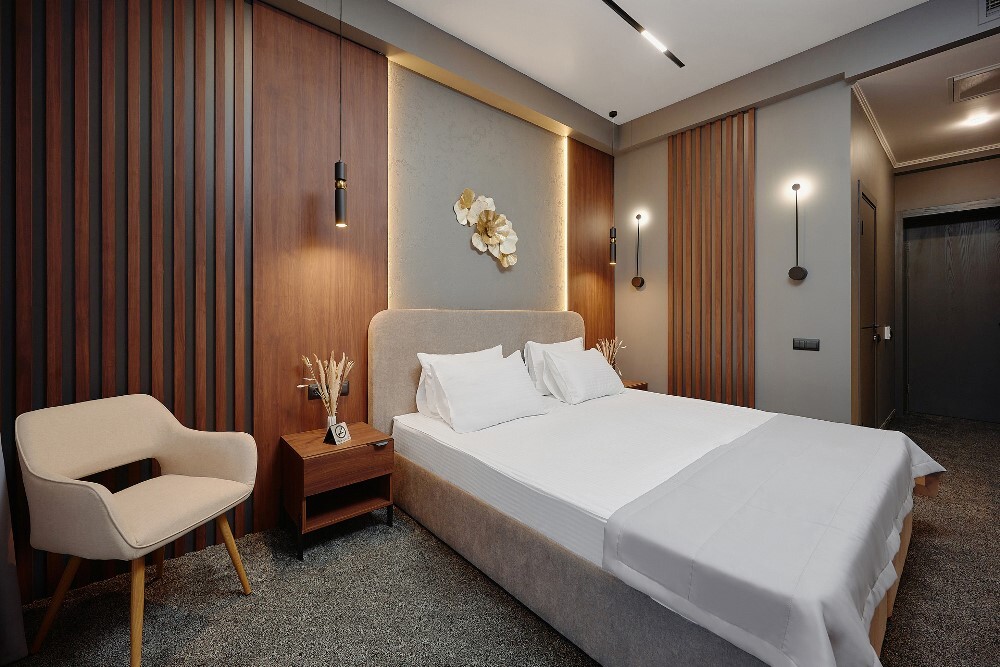 Комфортабельный номер категории "Супериор" без балкона в отеле "Грейс Глобал" идеально подходит для стильного и уютного отдыха. Просторный интерьер, элегантный дизайн и дополнительное спальное место обеспечат максимальное удобство для гостей. Все необходимое для вашего комфорта - от качественного постельного белья до современных удобств - уже ждет вас. Забронируйте и насладитесь уютной атмосферой отеля "Грейс Глобал"!